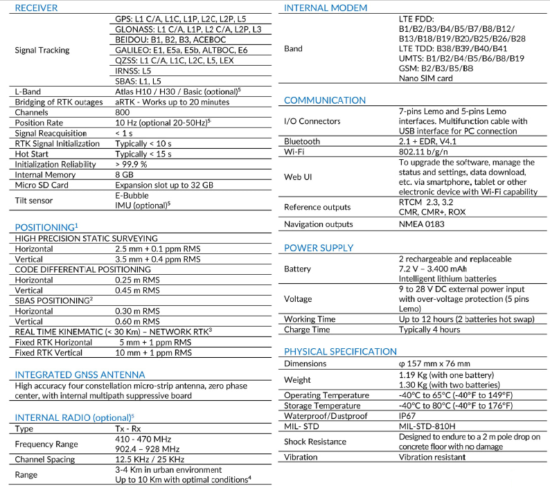 Stonex S900A is equipped with an high performance GNSS board 800 channels and capable of supporting multiple satellite constellations: GPS, GLONASS, BEIDOU, GALILEO, QZSS, and IRNSS, including L-Band Correction.
